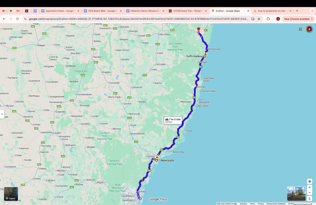 Tuesday – Woke up at 5:00 am so we could be at New Castle by 8:00 am. After the training we hit a couple stores in New Castle, had lunch at a little cafe then drove to Grafton to spend the night. We also had our first Australian Mexican food, not bad.