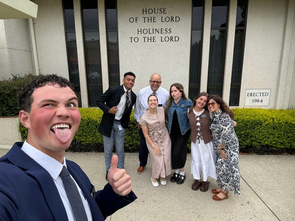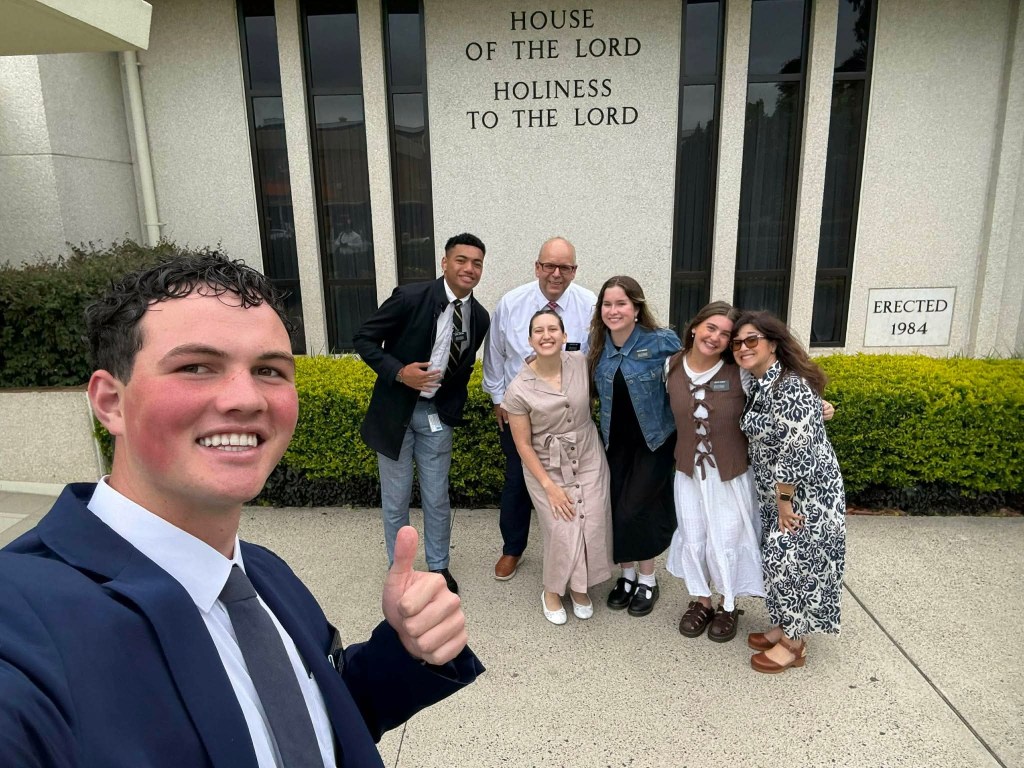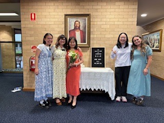 Friday 1/2 – We went to the grocery store again to get food for the baptism and “break the fast” luncheon for the missionaries (we need to do better about planning ahead for the week so we only go to the grocery store ONCE!). In the afternoon we met our dear friend, Thais, who recently got baptized, and rode public transportation with her to the temple in Carlingford. She introduced us to the subway (which we hadn’t ridden yet), which is the CLEANEST and NICEST subway we’ve ever ridden. It’s also faster than the regular train. We only had to ride the subway, then one bus ride to get to the temple. Once there we met two elders, one who was previously in our district and taught Thais. We went to the family search center and, with the help of a missionary who staffs the center, Thais was able to find more family members on her tree to do proxy baptisms for. Two sister missionaries – Sister Moncrief and Sister Hansen also met us and we were able to spend time in the temple doing baptisms and confirmations. The bishop of the ward our unit is tied to, Bishop Scott of the Summer Hill ward, was working at the temple baptistry along with his wife. It was wonderful to see them as well. What a joyous occasion it was being at the temple together! After some pictures in front of the temple, the 7 of us went to have dinner (sushi) at the mall across the street. Sydney must be the capital of “malls” in the world! There are malls (they call them shopping centers) EVERYWHERE! Stores are not free standing here; they are grouped together in malls so you can find one on every block!