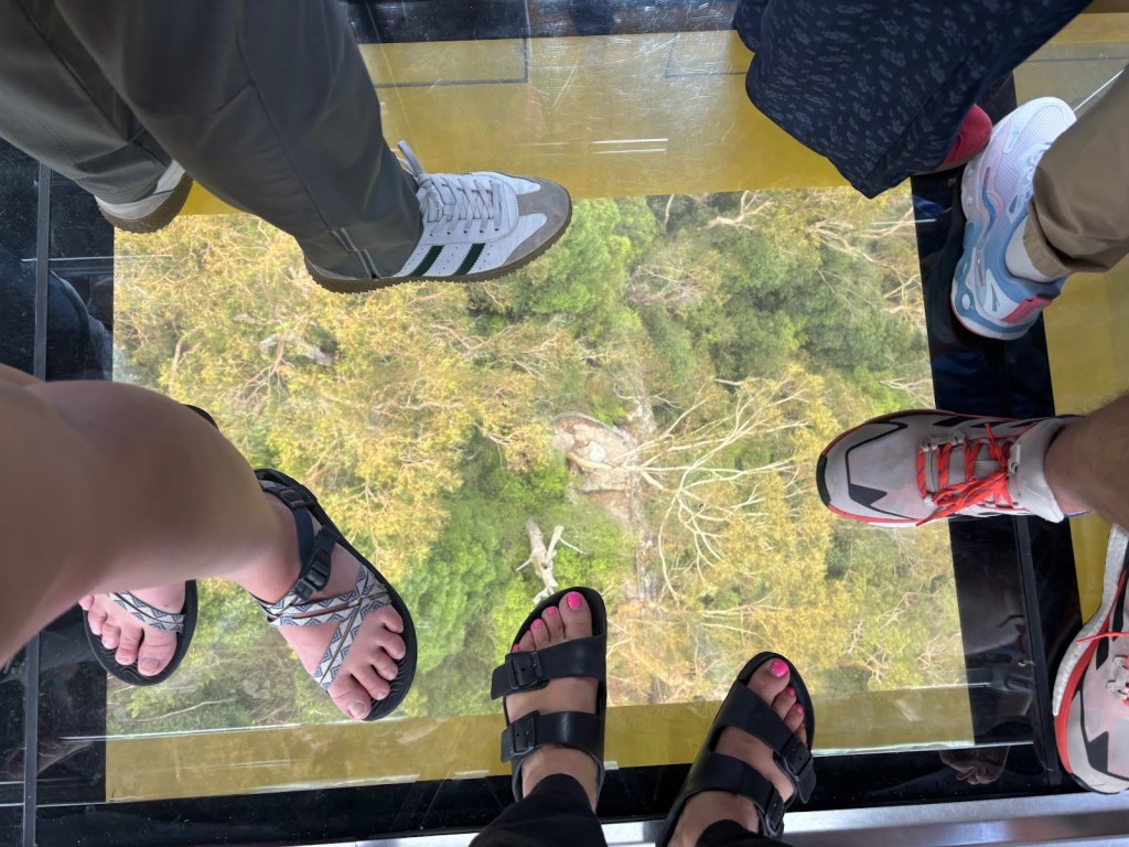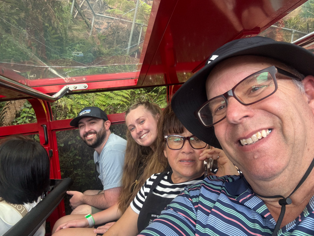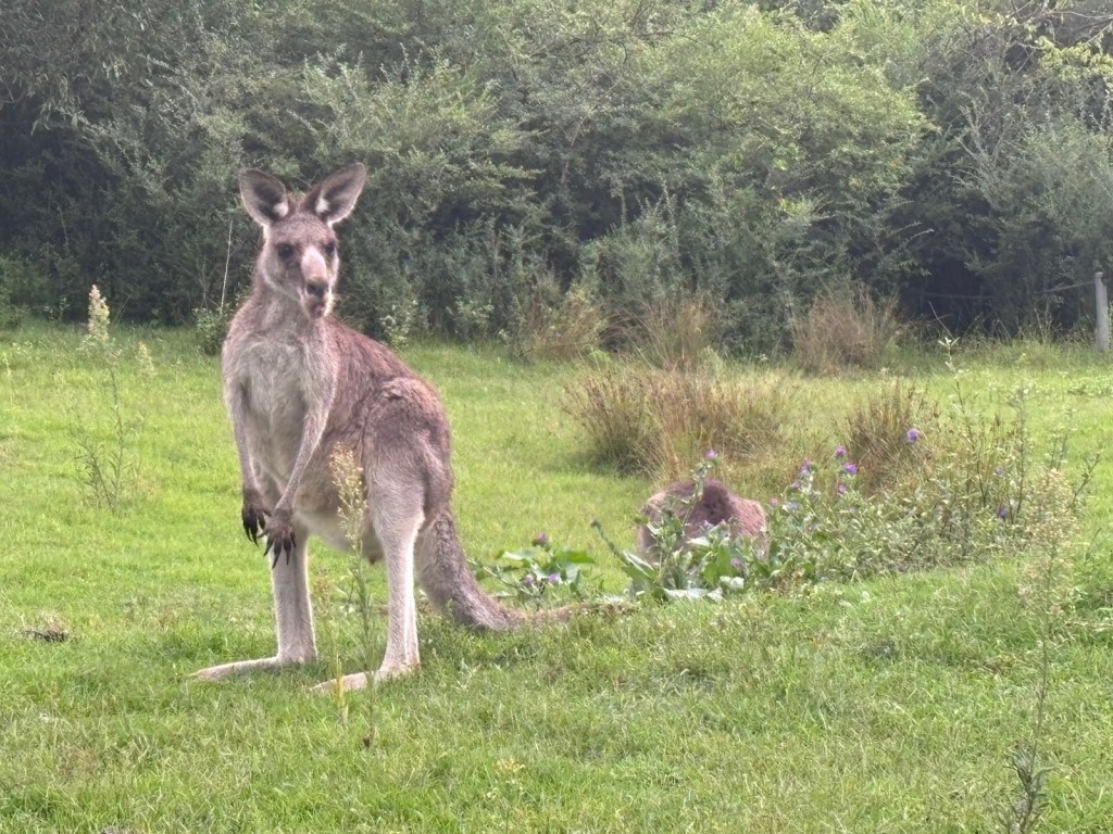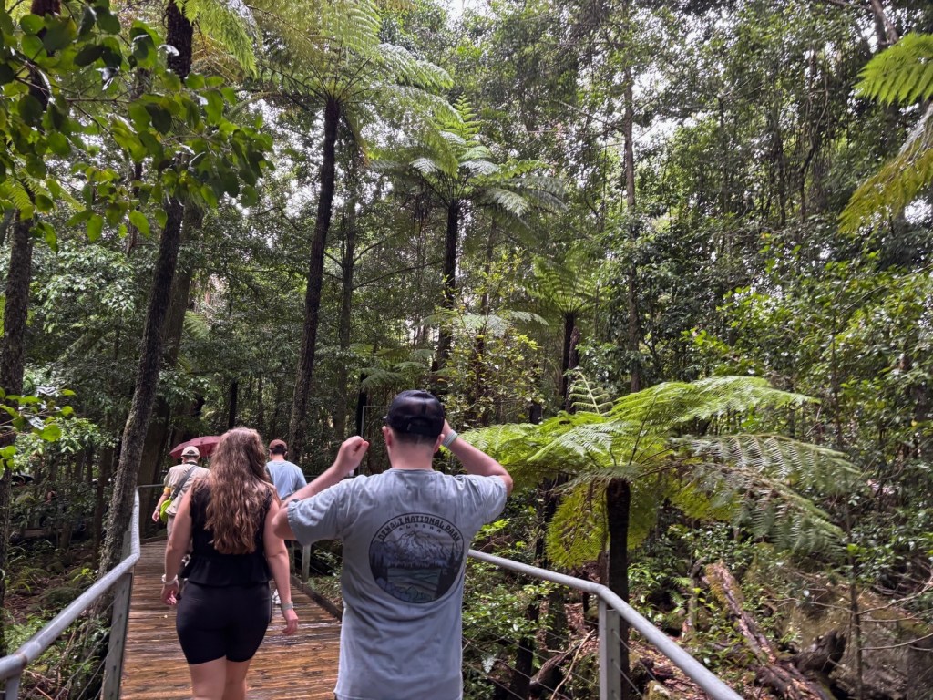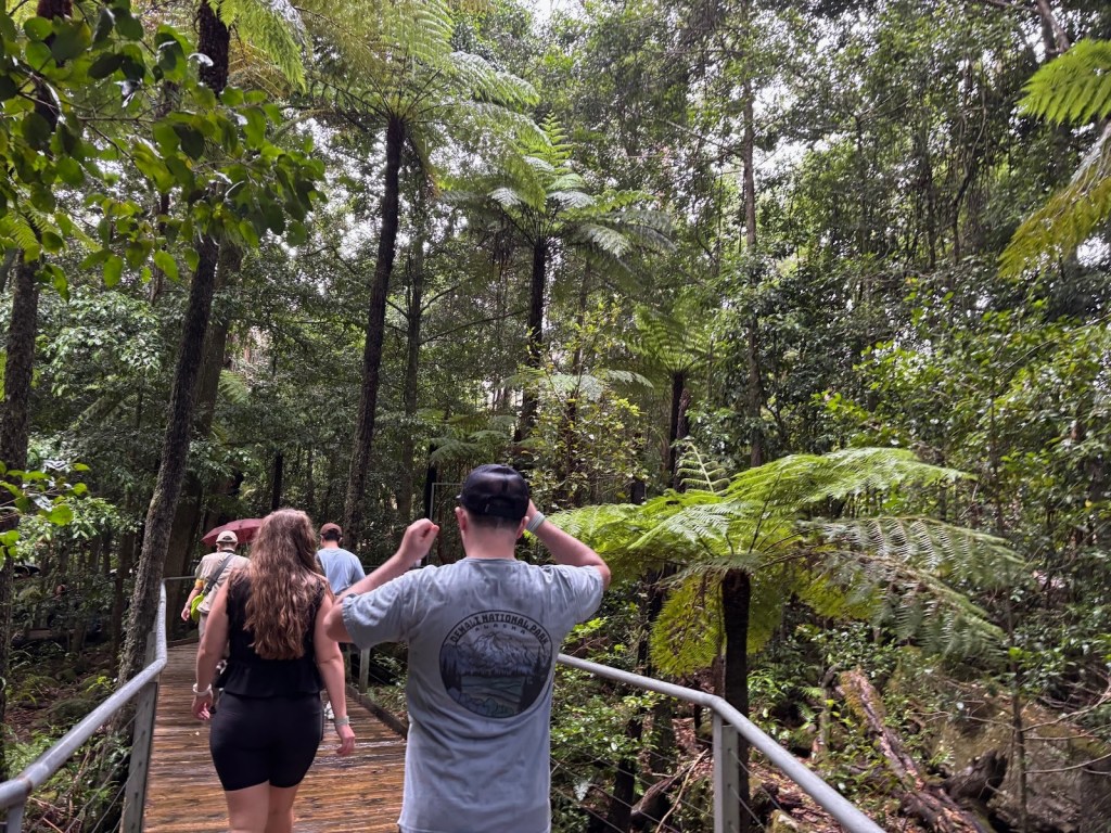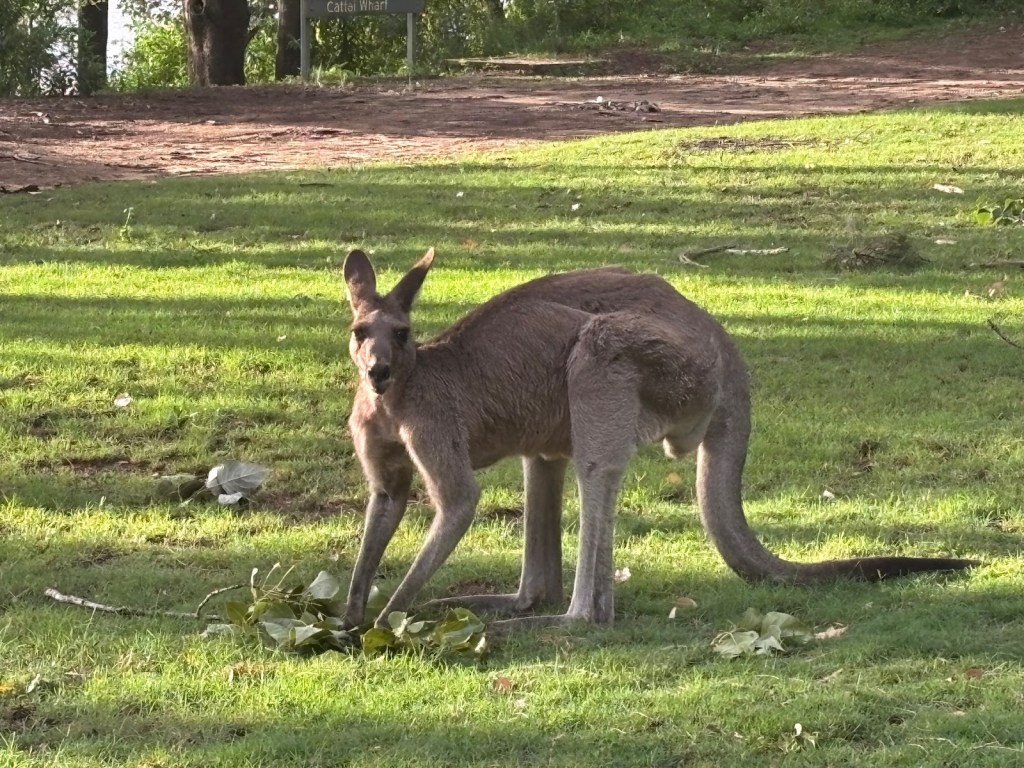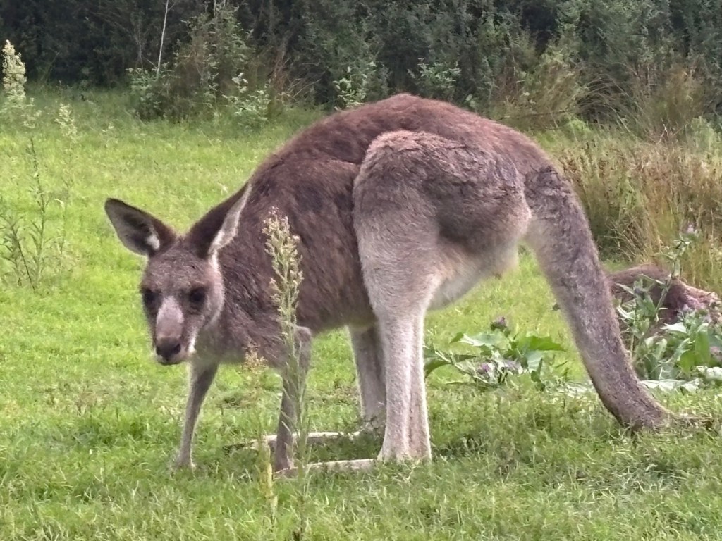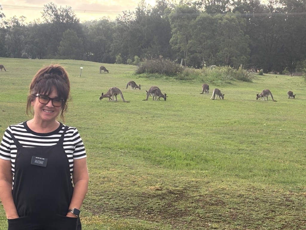Wednesday – Nate and Kaitlin went with us to a zone training about an hour away. While we were teaching they found a yummy spot for breakfast. Afterwards, we all drove another hour and a half to the Blue Mountains Scenic World. The canyon park there (Blue Mountains) is twice as big as the Grand Canyon National Park. While there we had lunch then took the Skyway tram across a canyon. The tram had a glass bottom so you could see down as we traveled across – cool and freaky at the same time! When we arrived on the other side, we took a quick “hike” down to see a waterfall. The line to take the tram back was long. After we arrived again at the “home base” we took the railway – which is the steepest railway in the world at a 52 degree incline – to the bottom of the canyon and we explored the rainforest walking on a raised plank platform. Next time we go I definitely want to take some of the longer trails at the bottom but we ran out of time. To get back out of the canyon we rode a Cableway to the top. This was our first time in a rainforest and it was truly beautiful! Fortunately (or unfortunately), we didn’t see any animals in the rain forest but they did let us know that a big, poisonous black snake had been on the platform with a crowd right before we arrived, waiting to ride the tram – eek! An employee at the bottom told us that he had seen multiple large snakes, birds, and insects in his time working there. On our way back to Sydney we took a detour to Cattai Campground, famous for its high kangaroo population. We stopped for ice cream then took pictures of at least 100 kangaroos at the campground. It’s kind of crazy how they can all stop eating the grass and stare at you for an infinite amount of time. If you try to get too close to them, they run away. I kept thinking they’d be like a dog and walk over to let me pet it but that DIDN’T happen – ha ha!