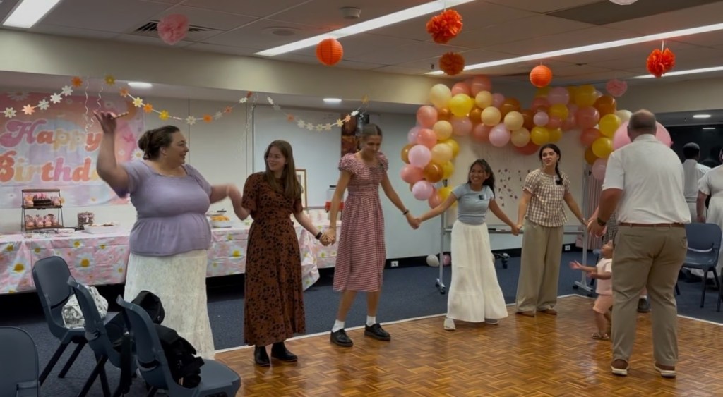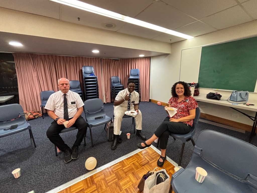 Friday – Eric dropped Kaitlin and Nate off at the airport early in the morning. We helped with some lessons at the church then started decorating for a 50th birthday party for a friend in our group. Thankfully the missionaries helped put up all the “groovy” decorations and it looked great by 7:00 pm when the party was supposed to start. I started getting a bit nervous when the guest of honor didn’t arrive until 40 minutes later. It turned out to be a fun evening with music, dancing, games and snacks. A HUGE shout out to our missionaries (Hyde Park and Summer Hill) for all their help setting up, cleaning up AND being AWESOME party guests!