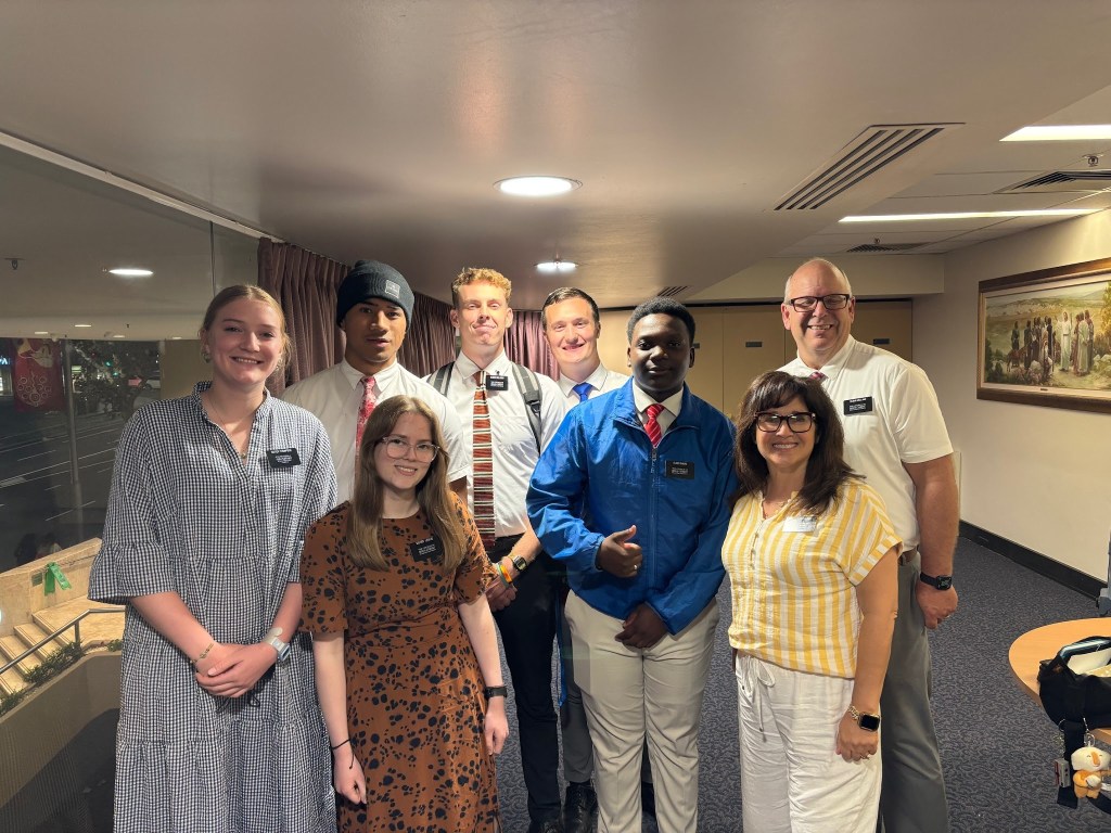 2/12 Thursday – On Thursday we had Zone Conference with 3 other zones, led by President and Sister Doane. I love zone conferences – where we receive training and are spiritually fed to help each us draw closer to the Savior as well as sharing the Good News of the gospel! It’s also great to see former junior missionaries who once served in our district. Since Eric and I have been teaching 6 zones for the preventative mental health (life skill) lessons, we have met and got to know MANY missionaries throughout the mission so we love to catch up with them at zone conferences!