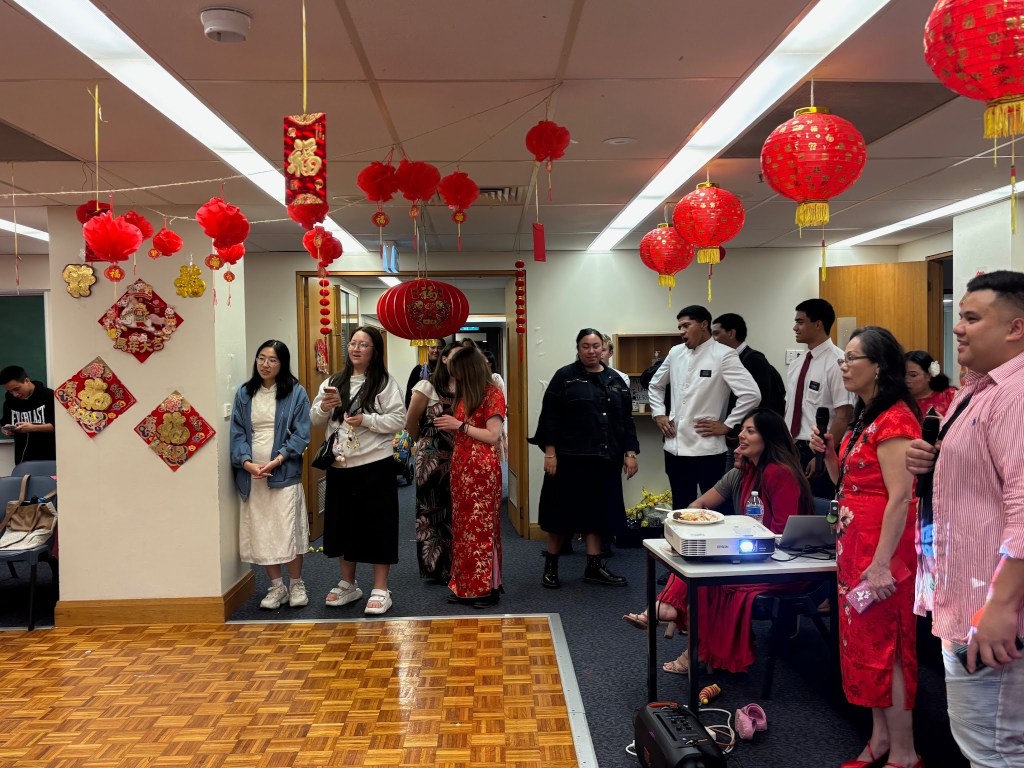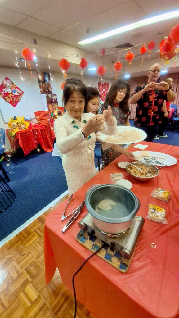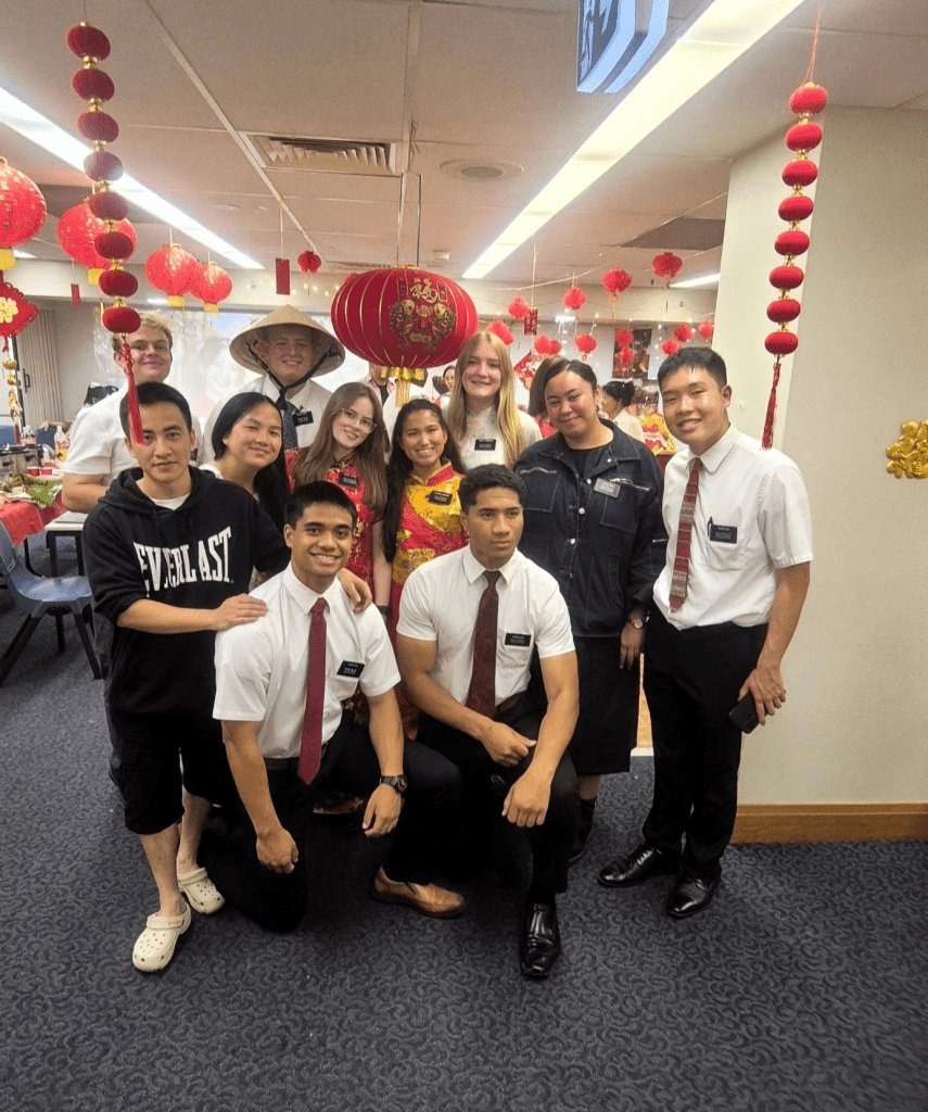 2/13 Friday – Friday morning we took Kaitlin and Nate down to the harbor to see the Sydney Opera House and have breakfast in The Rocks (by the harbor, where the first people from Europe landed/settled.). We took Nate and Kaitlin back to the airport, knowing we would see them again on Monday. That night was the AMAZING Lunar New Year Celebration! A HUGE shout out to Lyle and Lyka Elisara (our group leaders) for organizing an INCREDIBLE night of games, delicious Asian food, fabulous performances (instrument performance, the Lion dance by the junior elders, and a super cute song/dance by the little girls in our group). The Brillos (Adrian and Rhoda) and the Elisara’s led a few hilarious games! This group REALLY knows to have FUN!!! I was asked to MC, along with Sister Lam, who translated what I said into Chinese. It was one of the most fun nights we’ve had since we’ve been here! The turn out was FANTASTIC – with many group members and their friends attending!!
