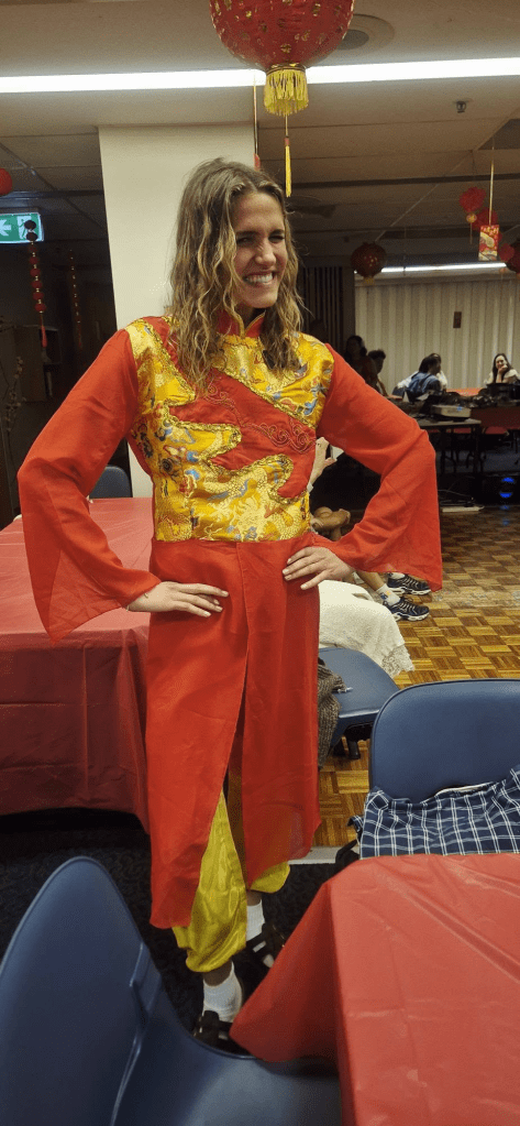 The last couple weeks have been super busy and I haven’t been able to post our weekly update by Sunday – oopsie!! We’ll try to get back in the groove this next week! 🤩This week the Lunar New Year celebrations started here in Sydney. The Lunar New Year is celebrated in many Asian countries, including China, Vietnam and Korea. While often used interchangeably, “Lunar New Year” is a broader term than the culturally specific “Chinese New Year.” There is a very large Asian population here in Sydney AND we live a block away from China town so you can guess, gearing up for the festivities was super fun to watch! There were free classes for kids to learn the Lion dance, lessons on writing your name in Chinese calligraphy, performances all around town, and tons of booths where you could buy clothing and decorations for the celebration. Since our local church group was holding a Lunar New Year Celebration – we decided that Eric and I needed matching outfits to wear! It was a new adventure to walk the streets and see the decorations going up and excitement building! We are definitely going to add the “Lunar New Year celebration” to the list of parties we host back at home in AZ! Get your festive attire ready, friends and family!