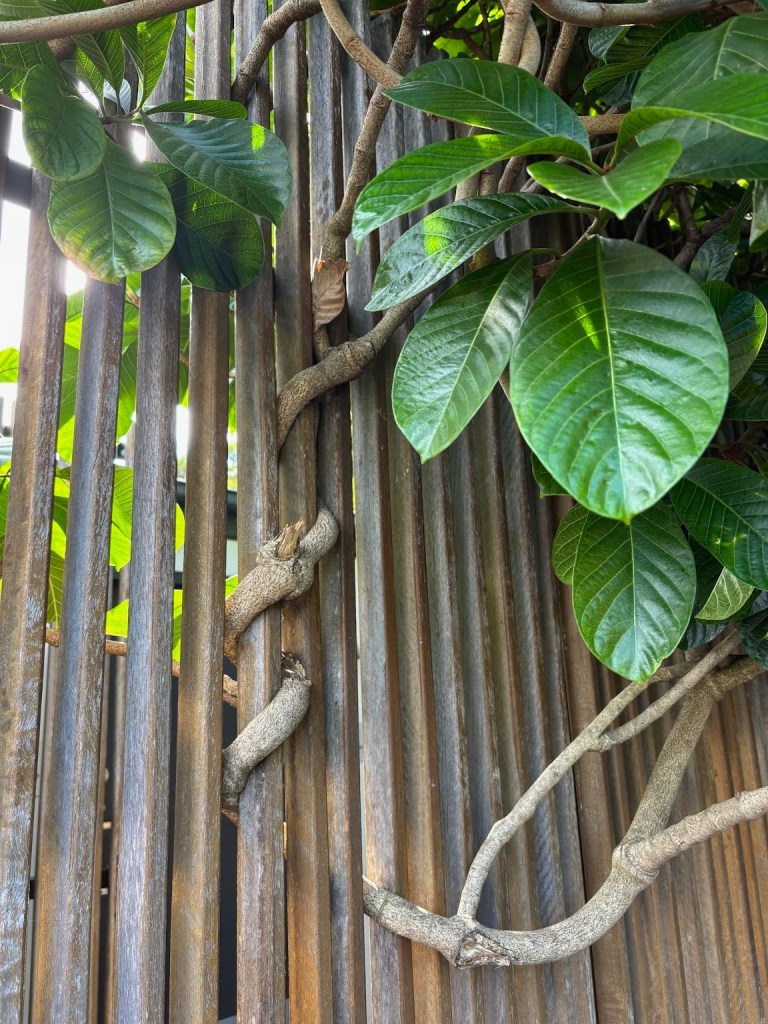 Looks like a snake but it’s just a tree branch grown around the fence!