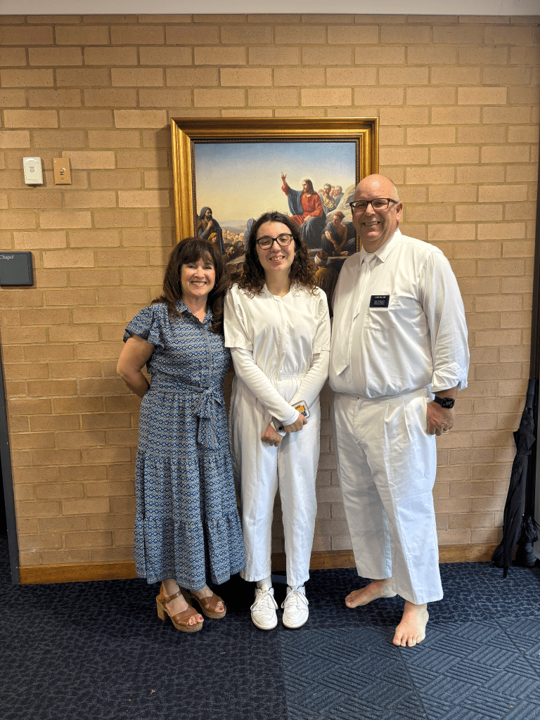 - Our elevators were out so we stayed in and worked. I wrote my talk and made cupcakes for the baptism then we carried them down the 10 flights of stairs to attend Byrdie’s baptism. Eric was supposed to baptize her but we realized his white baptism pants were stuck in our car in the flooded basement. We asked the Westover’s to pick us up so we didn’t have to ride public transportation to the Summer Hill church building (where the baptismal font is) and on the way we stopped at our church building to look for a jumpsuit or pants that would fit Eric. Eric grabbed other pants/shirts in case another missionary needed to baptize Brydie since we couldn’t find anything his size. When we arrived at the Summer Hill building, a bishopric member found two pairs of pants (the only ones they had) and they BOTH fit Eric (one pair looked like cropped pants on him – aka highwaters!) so thankfully he was still able to baptize Brydie. Afterwards we sang Happy Birthday to Brydie as she chose to be baptized on her birthday! It was a special day for all of us!