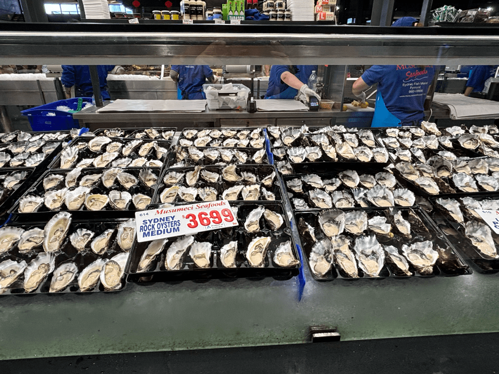 - P-DAY – woo hoo! We slept in then walked to the Sydney Harbor to take the ferry to Parramatta. Unfortunately, the wait was three hours for the next ferry so we took a ferry to the fish market instead. We had about 3 stops on the way and we thoroughly enjoyed the boat ride, seeing the city from different perspectives, being out on the water and feeling the cool breeze! It’s incredible that we can go on a “free” boat ride each week! We both love it! Once at the stop closest to the Fish Market – we inquired about this awesome maritime museum there at the harbor. We met the guy at the counter and invited him to attend church with us (to which he replied that he might!). He said he’s met quite a few missionaries who come to the museum. We’re definitely going back! It’s only $30 and includes going on all the military vessels, including a submarine. We then walked around the new Fish Market, which is a huge, gorgeous glass building on the water. It was an experience just being there – seeing all the seafood they sell (some I have never heard of or seen before). A security guard gave us some tips on which restaurant to eat at so we had a delicious lunch at The Boat House, also located at the Fish Market (they have many restaurants there), ordering their special of the day which included a delicious, tender steak and lobster tail! YUM! The delicious food and the gorgeous view of the harbor was the perfect “reset” spot for the week!